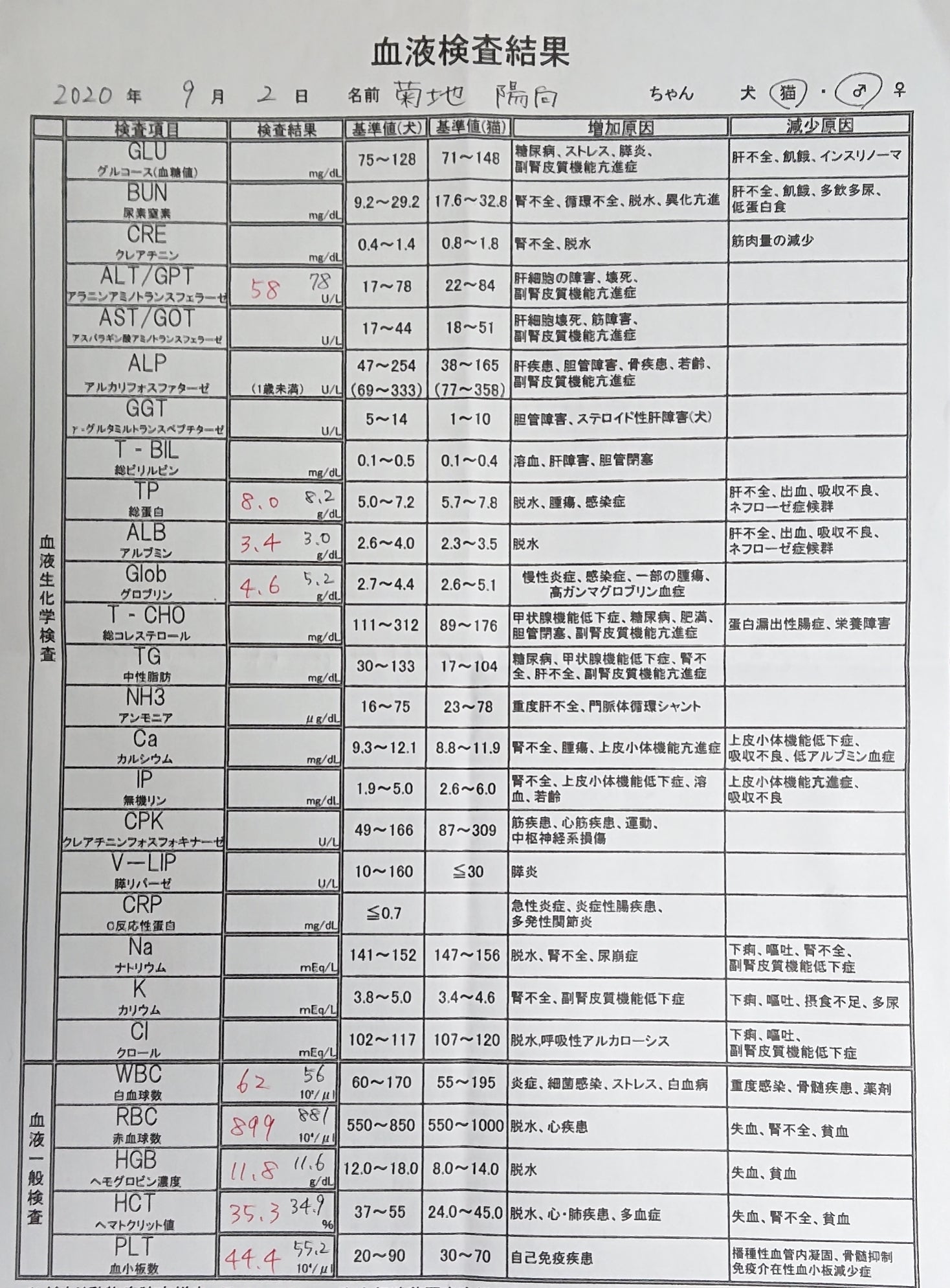 他の数値も基準値内に収まっています。