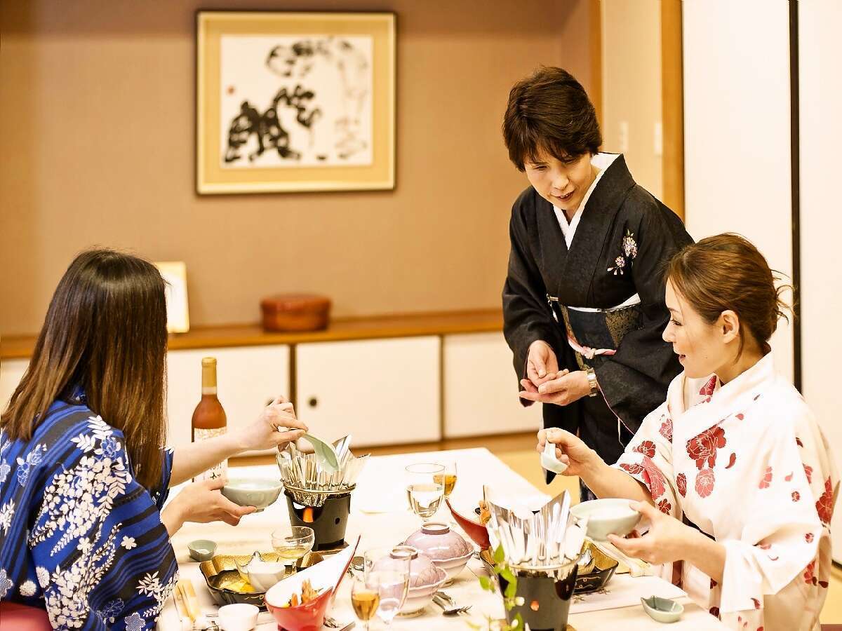 地元の食材を使用し、お料理はすべて自慢の天然水仕込み、料理人の調理スパイス、名物女将の接客によるお食事処。ご宿泊の方、日帰りの方問わずご利用いただけます。
