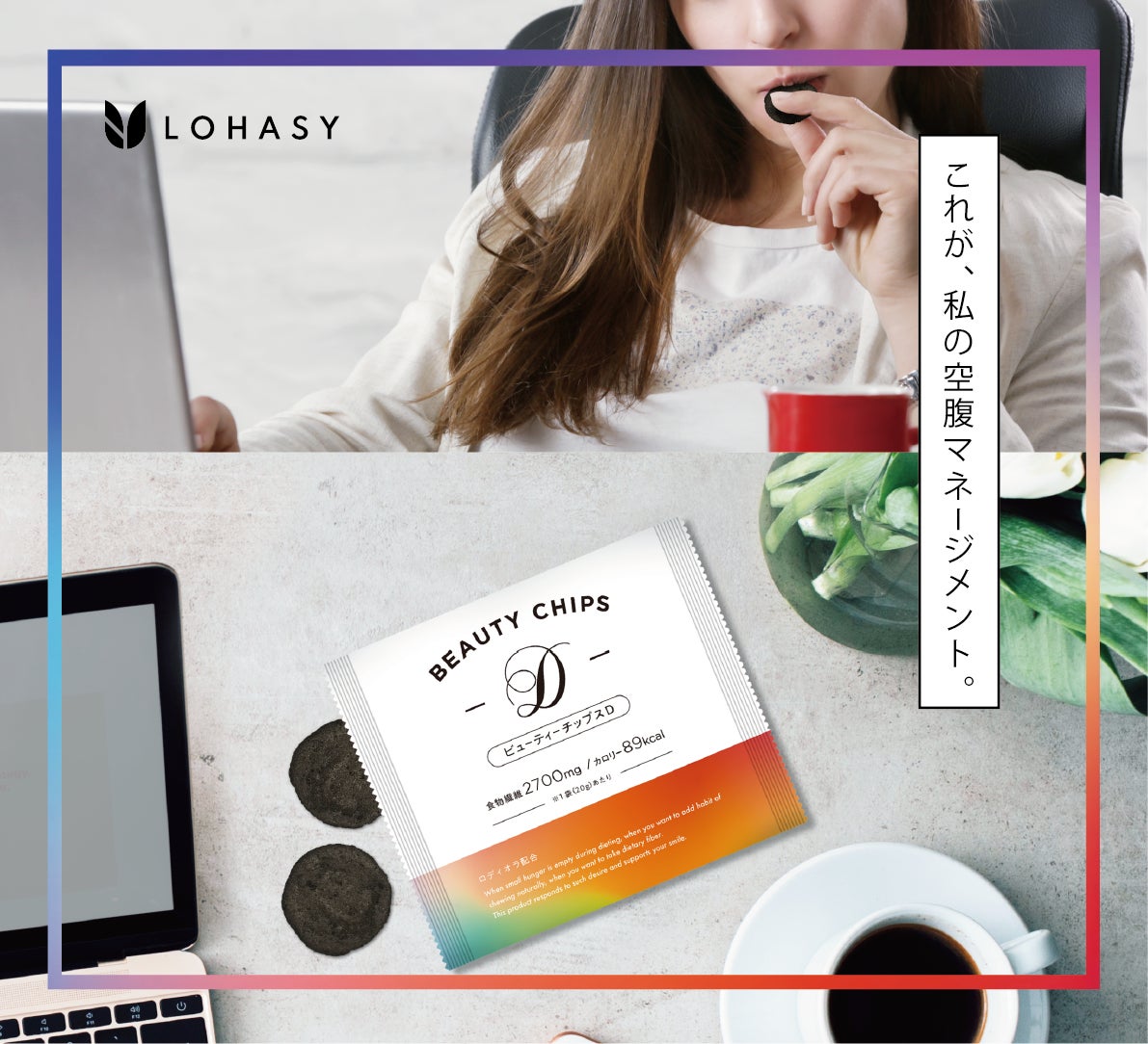 本年8月を目標に、”食べたい衝動”を”食べて解消”するチップス【BEAUTY CHIPS D】の発売を計画しています。本商品は、「膨らむ&咀嚼で得られる満足感」で空腹のイライラを撃退するダイエットサポート食品です。