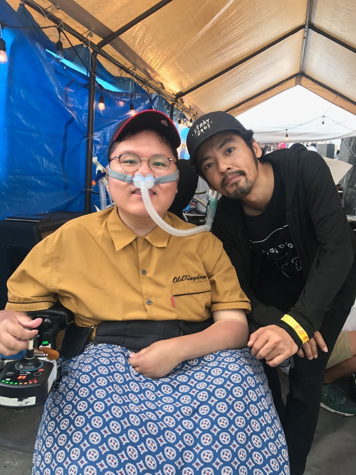 それに気づくことができたのは、ミュージシャンの「七尾旅人」さんと出会ったことでした。僕はもともと弾き語り系の音楽が大好きで、呼吸器のままライブやフェスに遊びに行きます。
