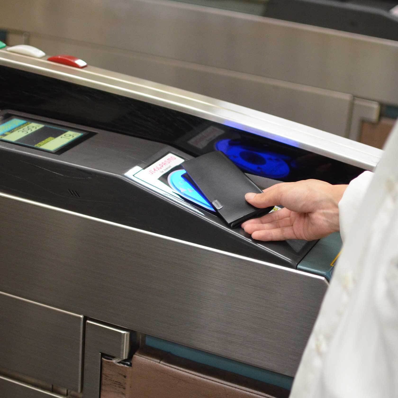 Suicaなどの交通系ICも入れたままでも磁気を通すためパスケースとしてもオススメです。