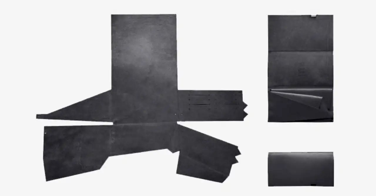 しかし所作は縫い糸を使わず折り紙のように折りたたみ、一点のみボルトで留めるという独特のデザイン。