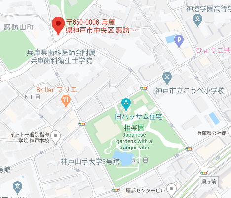 南側には有名な庭園・相楽園があり、小学校・兵庫県庁・高層マンションという多世代が混在する立地です。