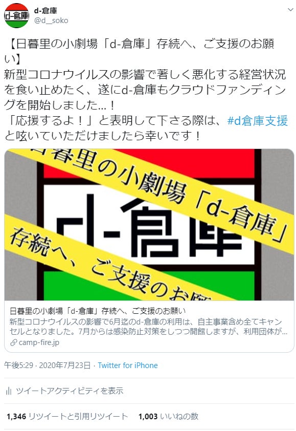 「d-倉庫」存続クラウドファンディングに寄せられた皆様のメッセージ