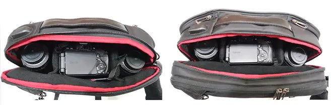 A: はい、どちらのバッグも、Canon600Dなどの市場に出回っている一般的な一眼レフカメラを収納できます。さらに2枚のショートレンズ(直径8cm、高さ16cm以下)を入れることができます。
