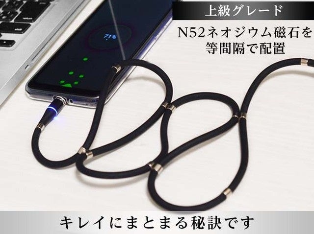 ・磁石で巻きつけ絡まらない「Magic Cable特許」