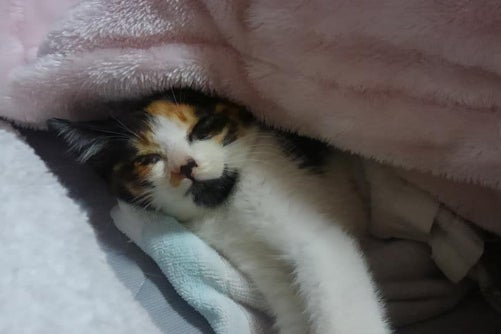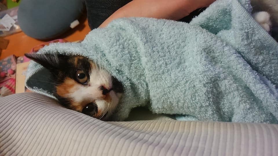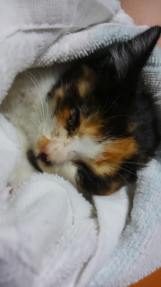 うちの裏の用水路で事故にあった子猫がうずくまっていたのを保護しました。