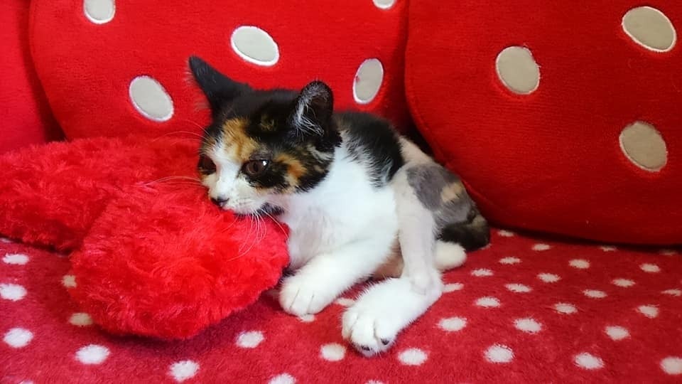 遅くなりました。とりあえず赤星たみこ先生と私のイラストステッカーのみ仕上がりましたので順番に配布させていただきます!みなさま本当にありがとうございました(⌒▽⌒)8月8日で通院はとりあえず終了いたしました。プレート抜去も子猫の体力的問題から麻酔手術を重ねないほうが良いとの判断で抜去しない方向になりました。去勢手術の時期にまた状態を見ていただく感じになりました。ミケさんの様子は、 隔離部屋を開放したのですがまだ他の部屋に出ようとしません。部屋の中ではちゃんと歩いて遊んでいます。そしていまとても甘えん坊さんです。歯もまだ乳歯です。