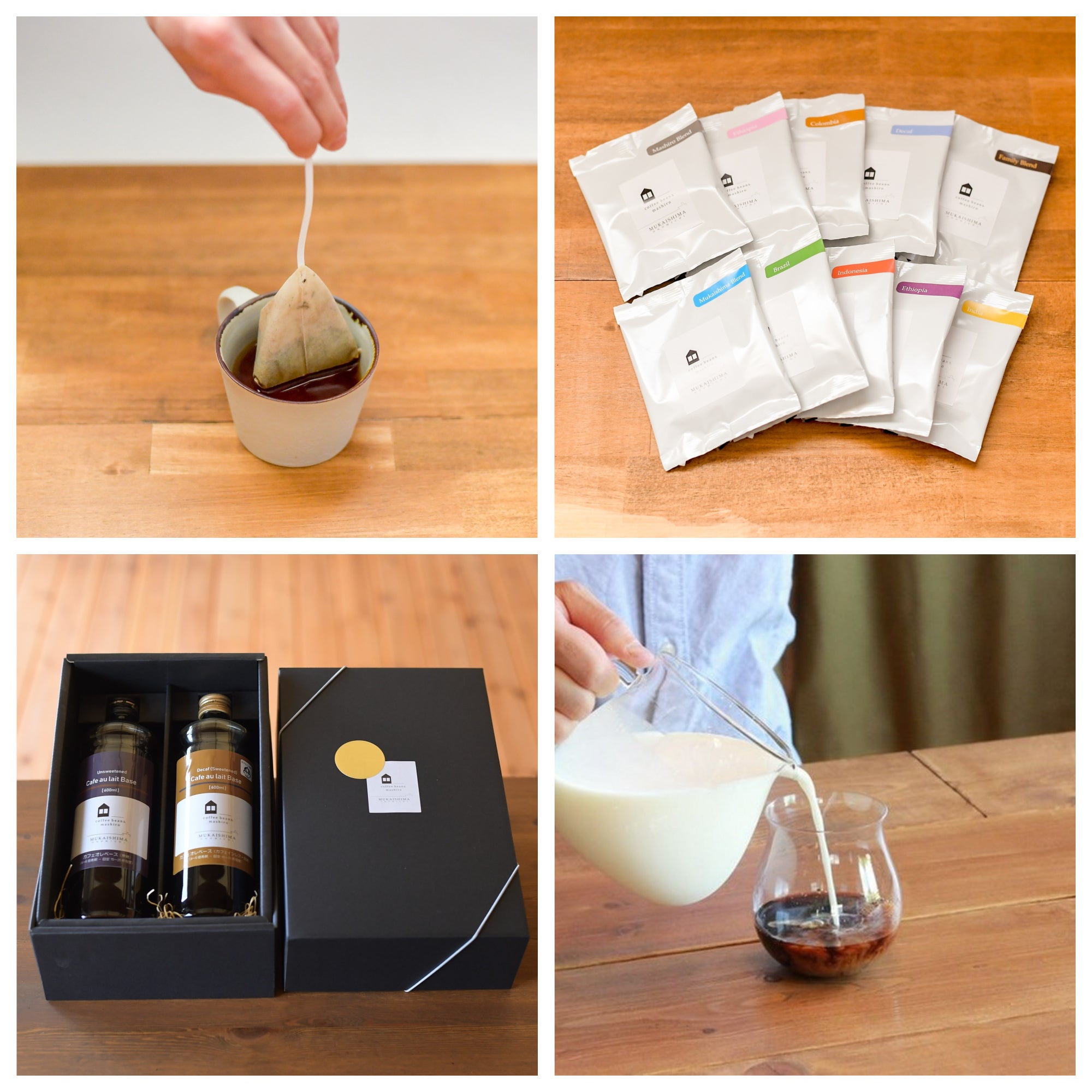 ティーバッグ型のコーヒーやカフェオレベースなど様々なコーヒー製品をたくさん作っています。