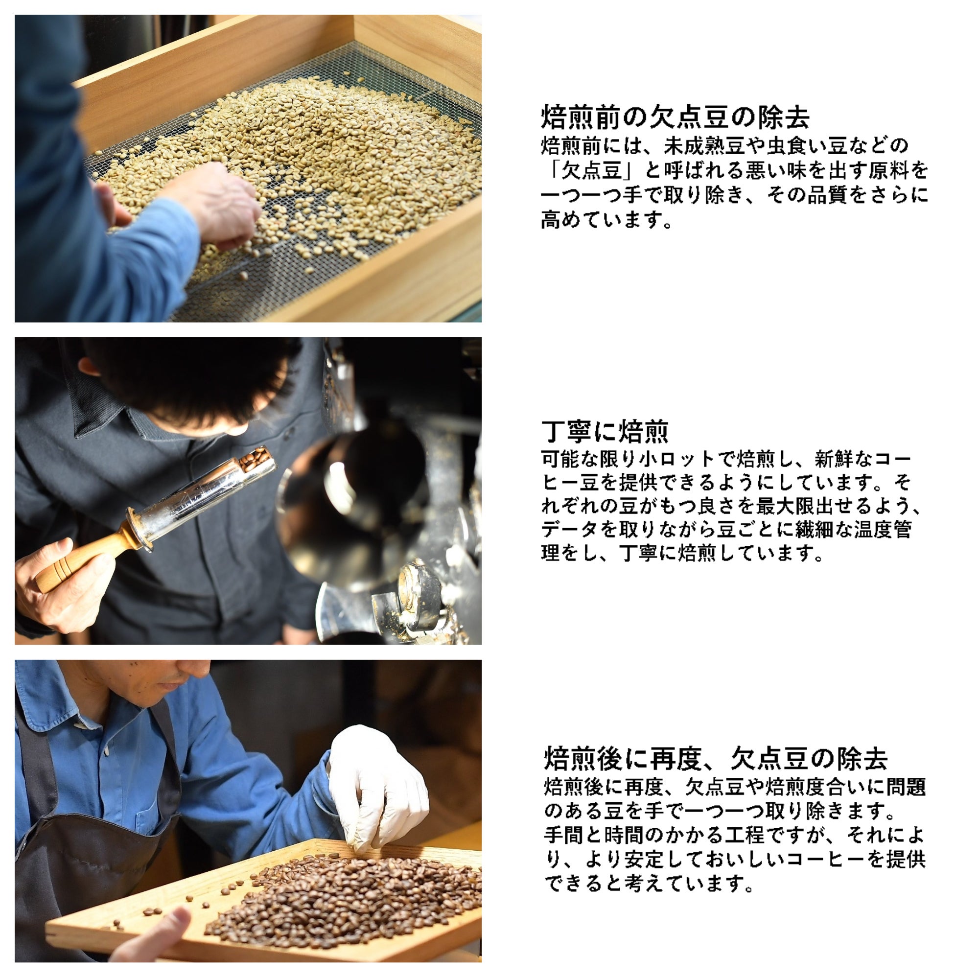 焙煎工程の一部当店は創業当初から「あなたがあなたの大切な人に淹れたコーヒーが世界で一番美味しい。 」という考えを大切にしています。