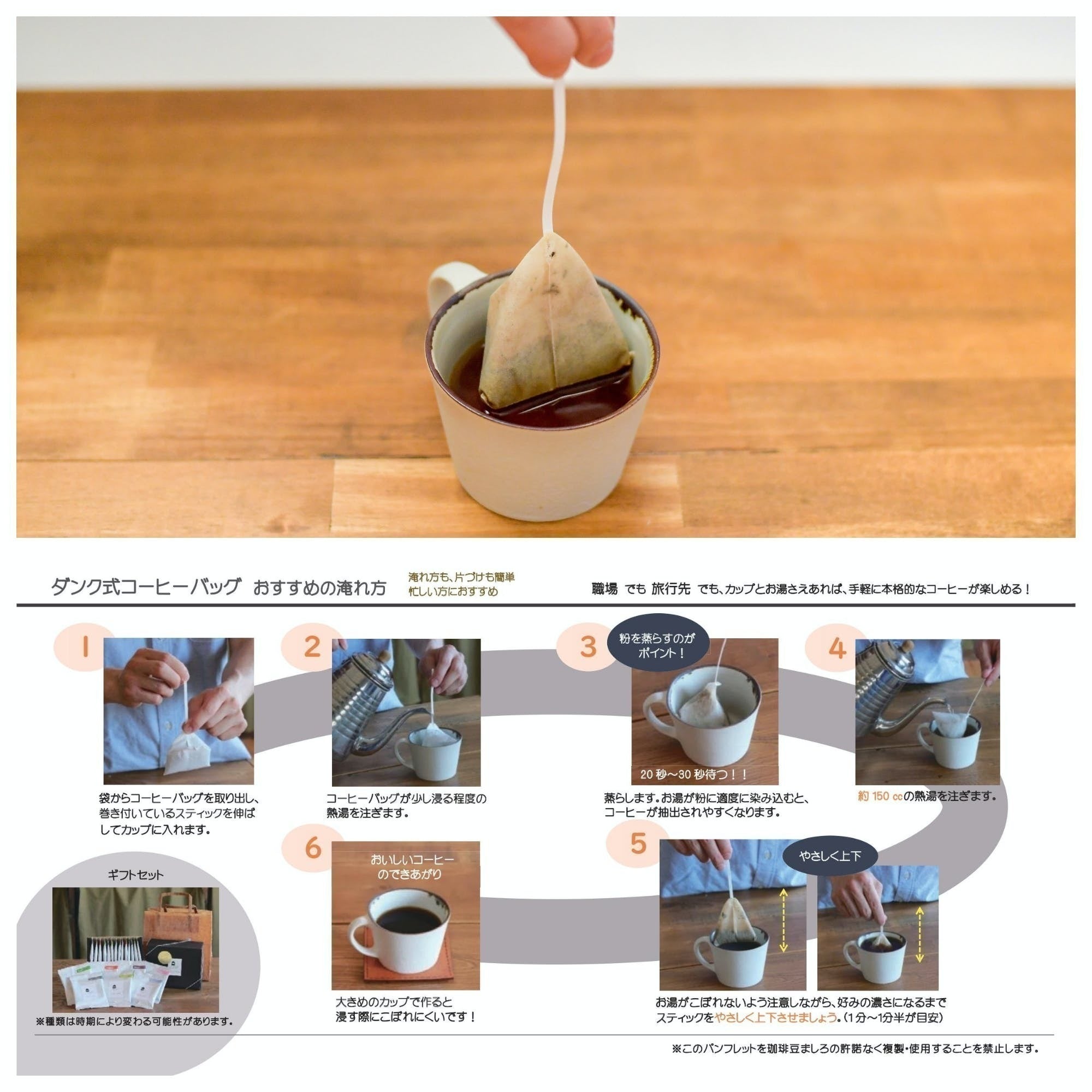 中身は、当店が創業当初から製造しているダンク式コーヒーバッグです。