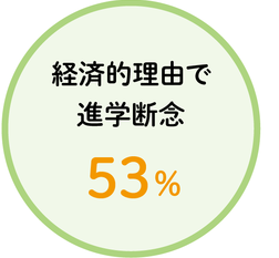 私が考える幸せとは、自分がやりたいことができる環境だと思います。しかし、あしなが育英会の調査によると、経済的理由で進学を断念してしまう学生は、53%もいます。