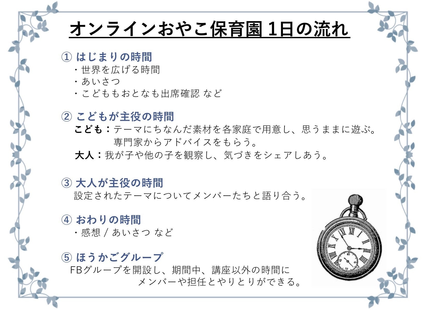 ◆オンラインおやこ保育園 1日の流れ