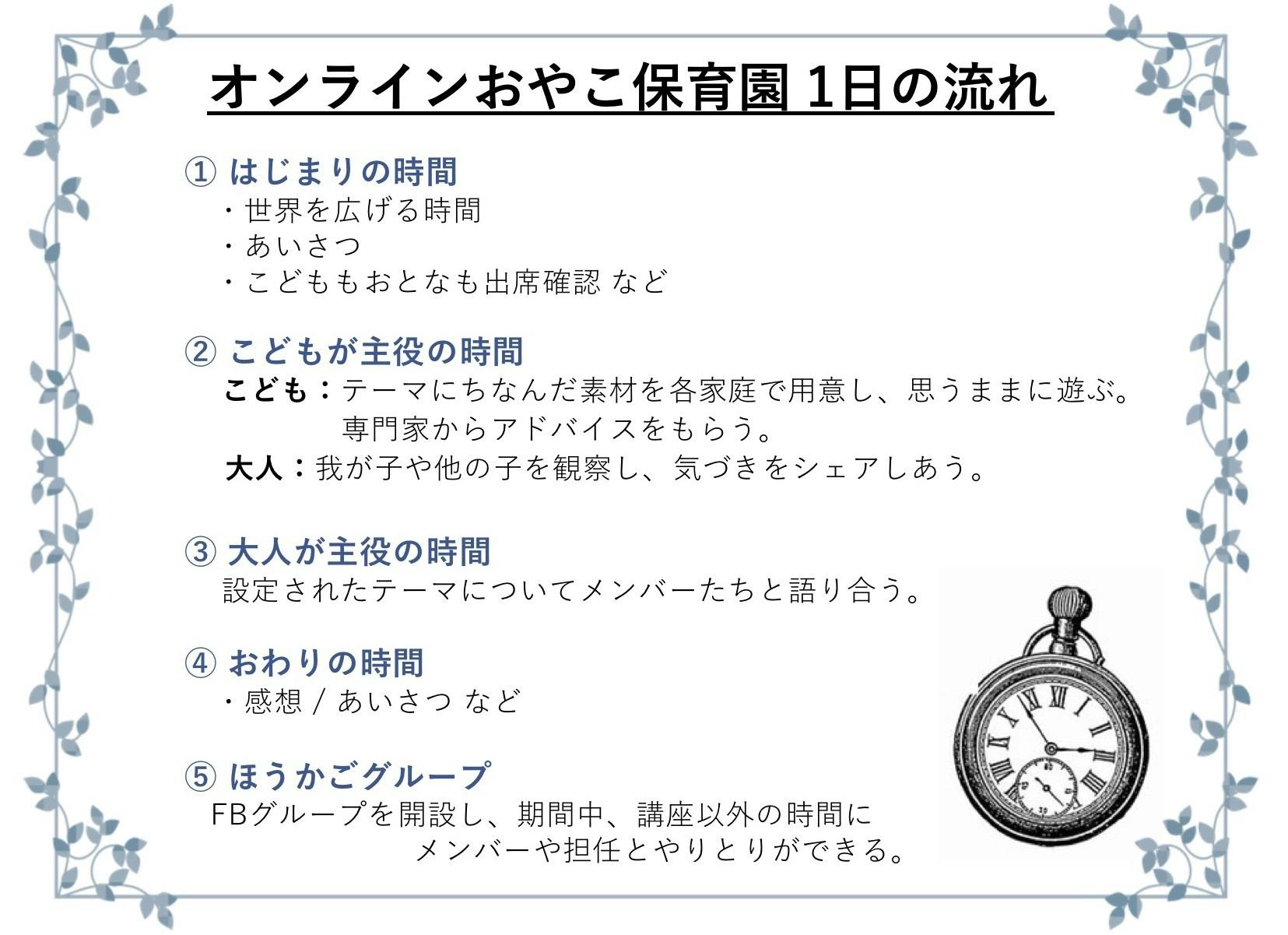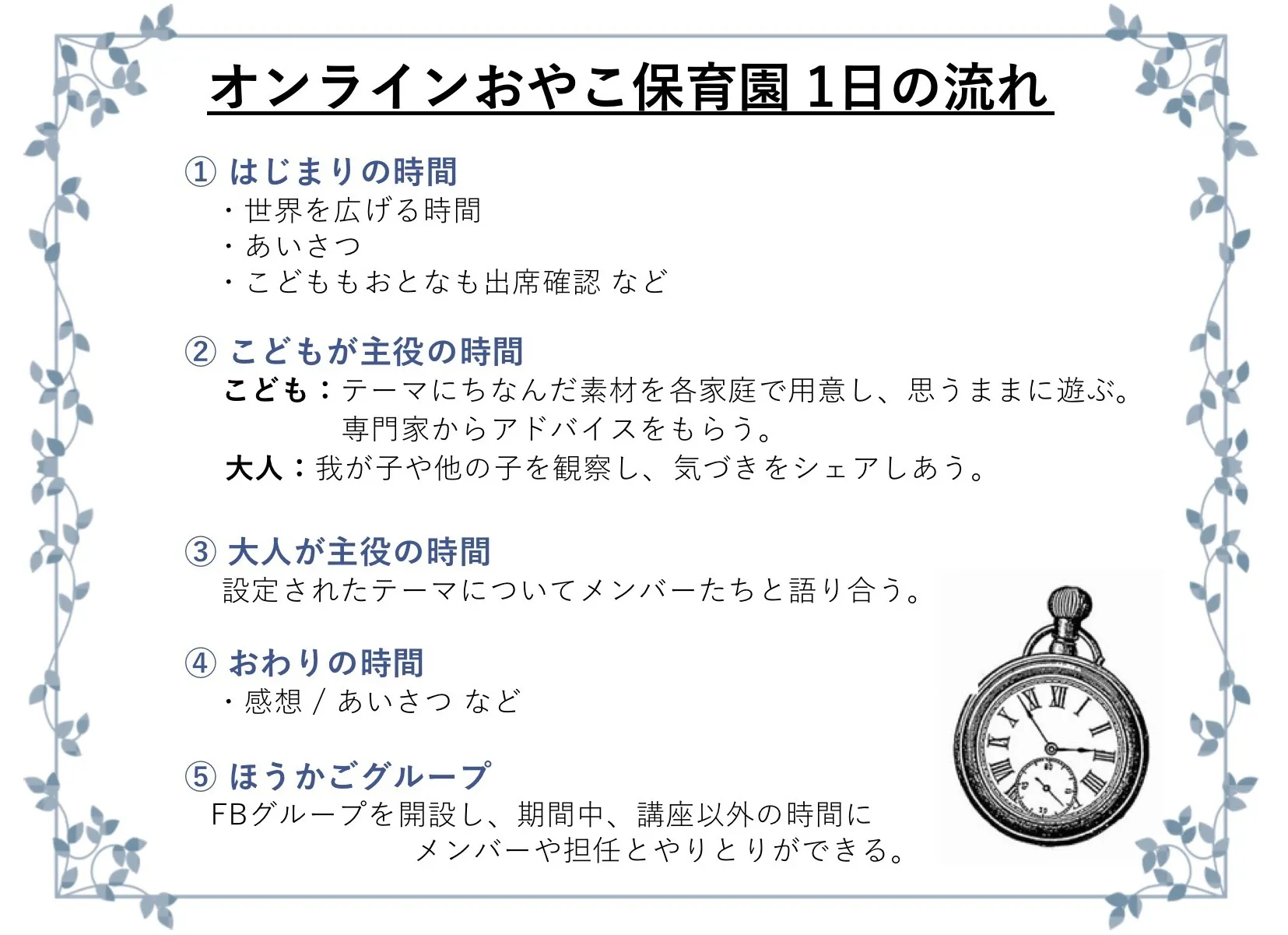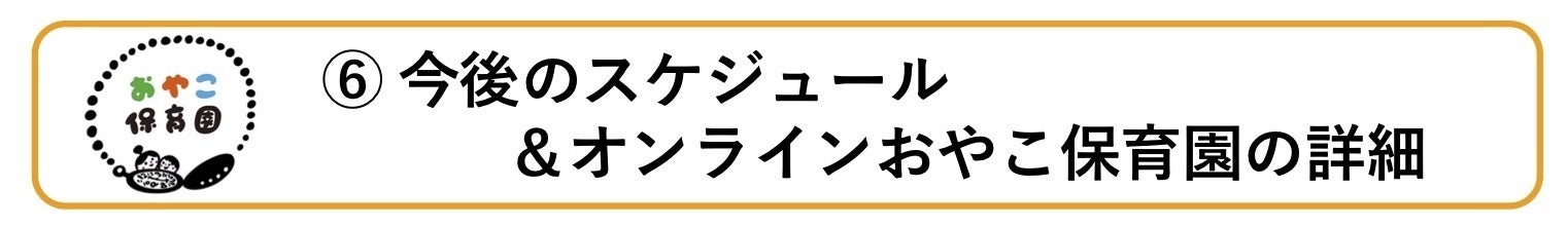 ⑥ 今後のスケジュールとオンラインおやこ保育園の詳細