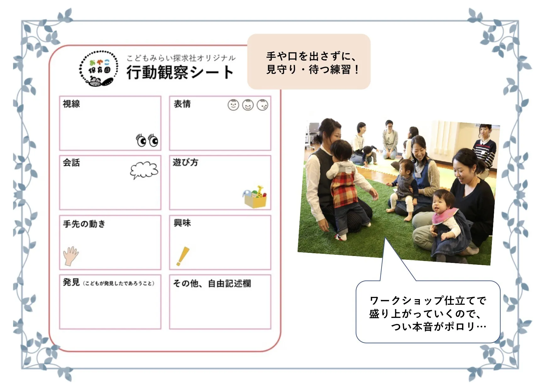 大人:「観察シート」を参考に、我が子を見守る練習。