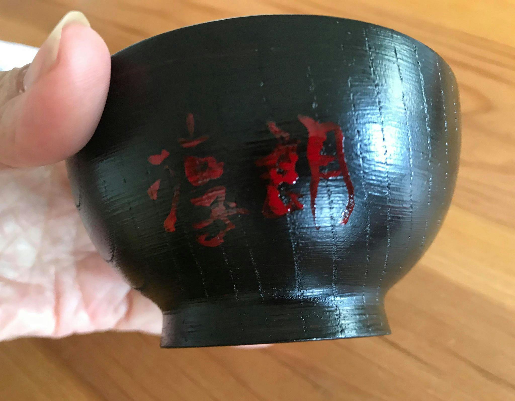 出産した人にいつも川崎が贈るちいさな漆椀を、淳先生にもと名入れも川崎自身が書きました(わざわざ、名入れのために筆と漆を持ってきてくださった笹原みどりさんには感謝)