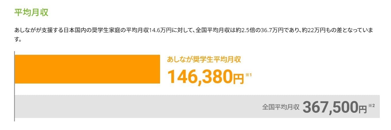 あしなが育英会の調査によると、遺児家庭の平均月収は14万6,380円(*1)となっており、生活保護受給率は12.8%24(*2)に及びます。奨学金なしでは大学・専門学校の学費を捻出できる水準には到底達していません。