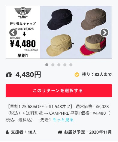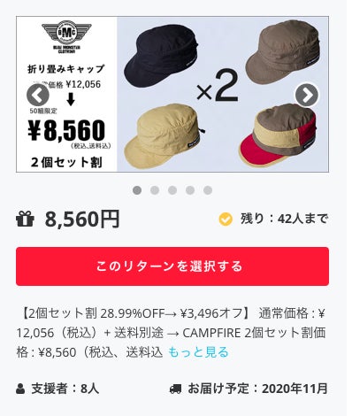 これから【折り畳みキャップ】に熱いご支援を考えている皆様