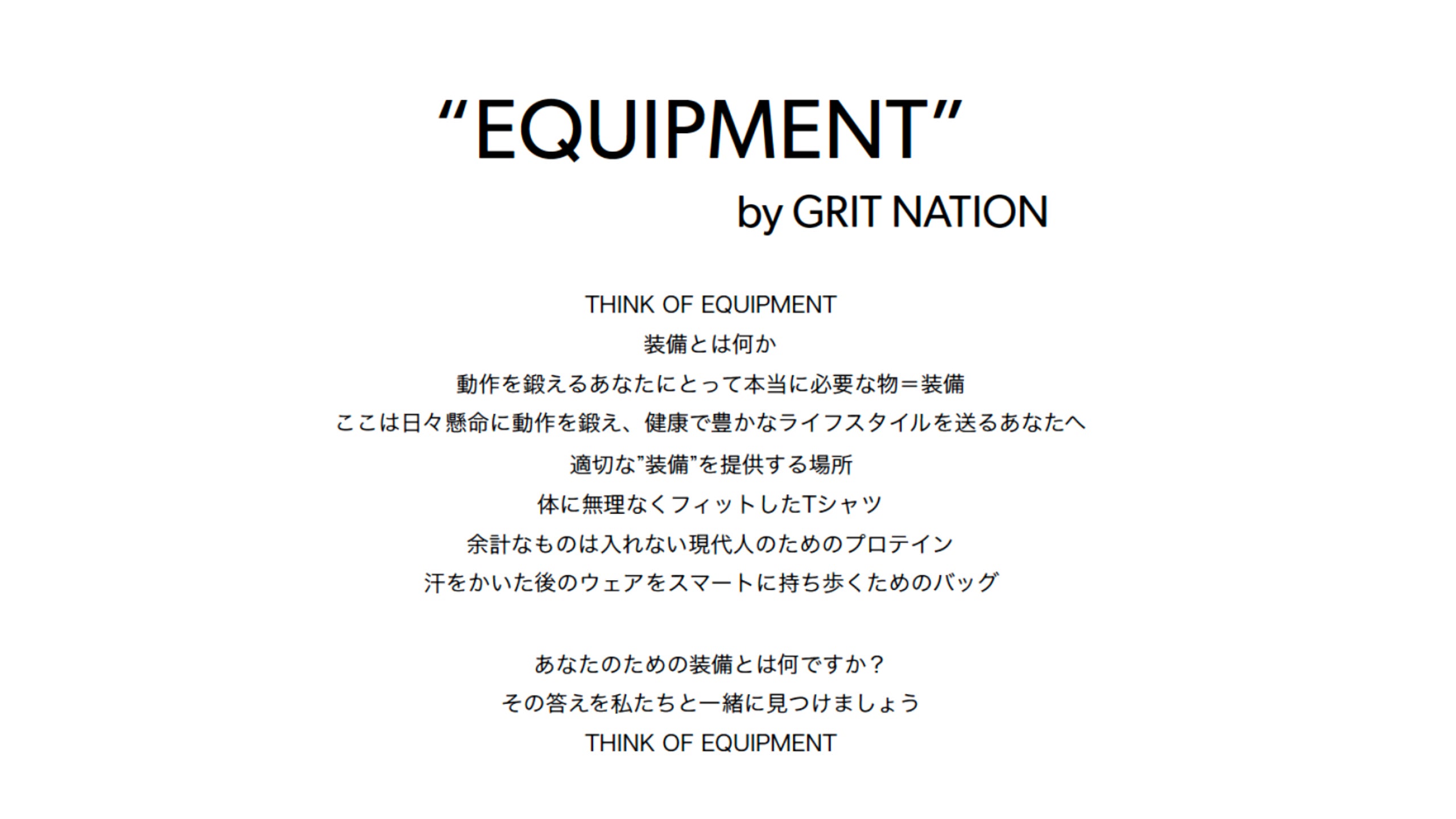 エントランスは「進化を楽しむ」ライフスタイルに基づいて編集されたセレクトショップ。ジムしかやってこなかった3年間、「GRIT NATIONはジムではない」と言い続けてきましたが、ようやくその思いを形にする時が来ました。