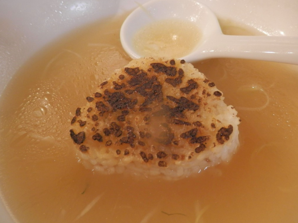 麺を食べた後はへしこおにぎりをスープに混ぜ、雑炊として召し上がっていただけます。