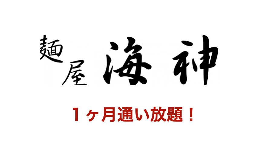 麺屋海神の店舗に1ヶ月何回でも通い放題で、ラーメンが一杯無料となります。