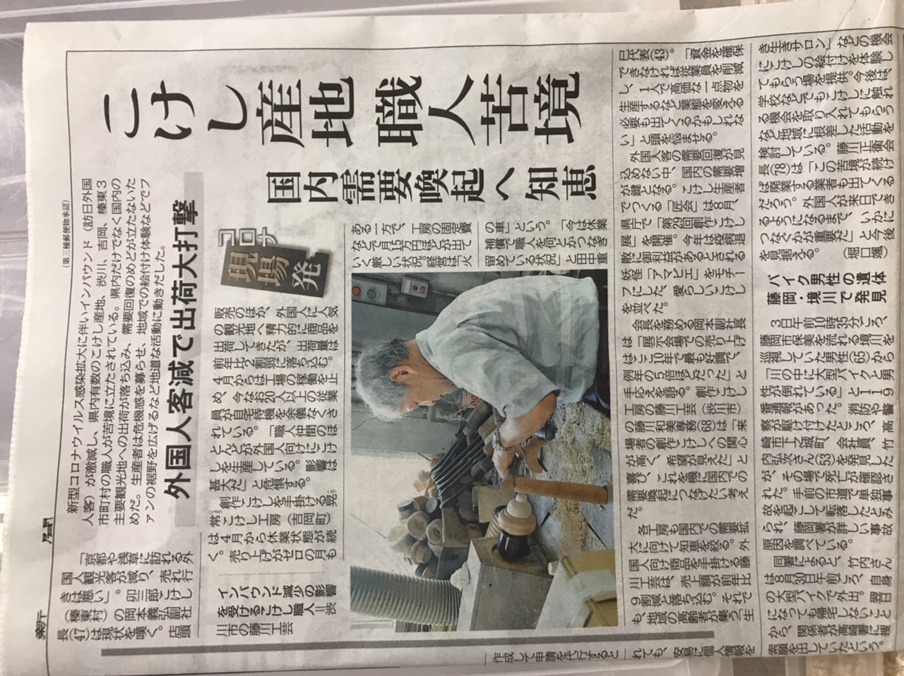 9月4日付けの群馬県の地元新聞社である上毛新聞さんにて、今回の新型コロナが群馬県のこけし産業にどんな影響を与えているか、現状はどうなっているかを取り上げて頂きました!