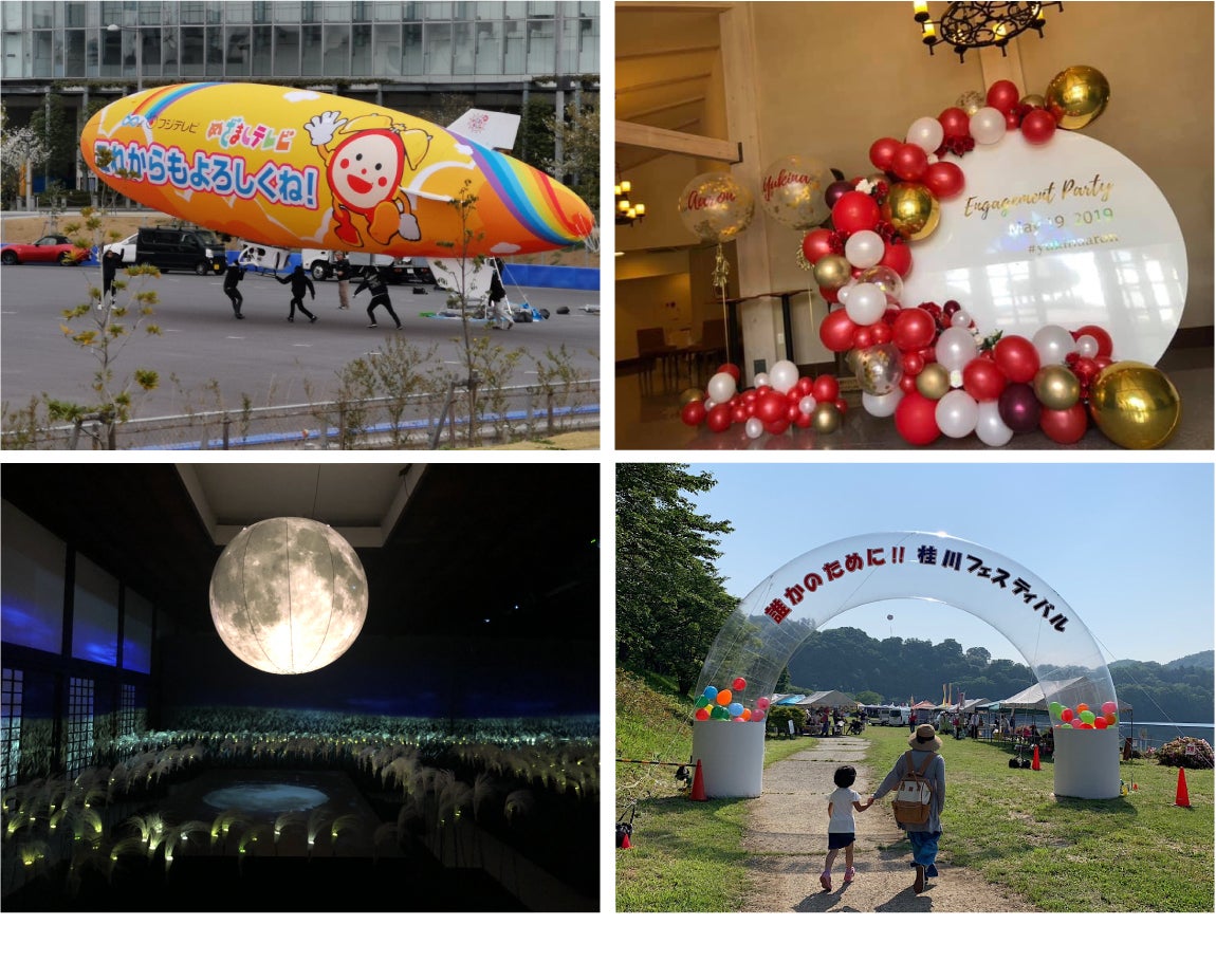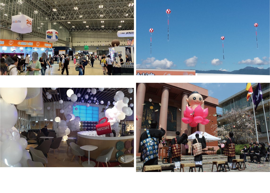 イベント・展示会に欠かせないアイキャッチとなるバルーンや、最近ではあまり見かけないアドバルーン・飛行船を使って宣伝広告をしております。またバルーンギフトを中心としたネットショップ(lamour balloon)も運営しております。バルーンアレンジギフトは、発表会・誕生日・ウエディング・お祝いのプレゼントにご好評をいただいております。