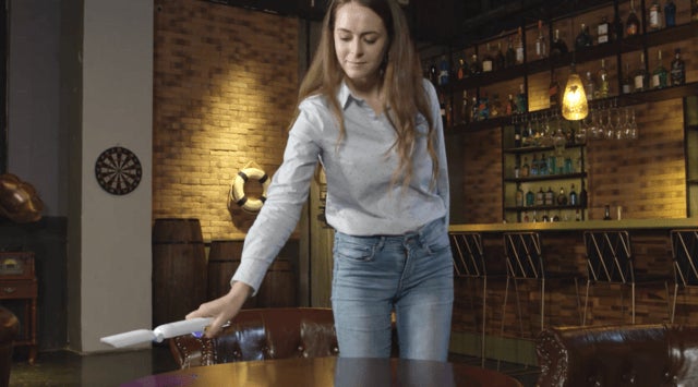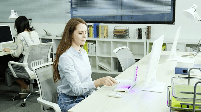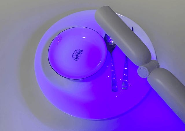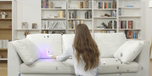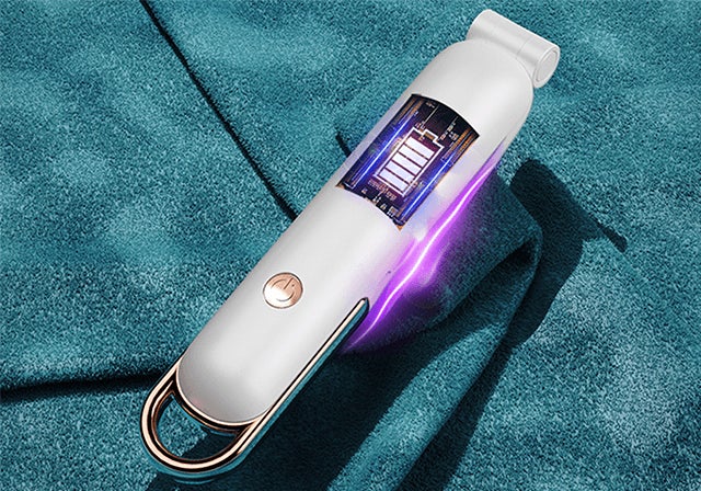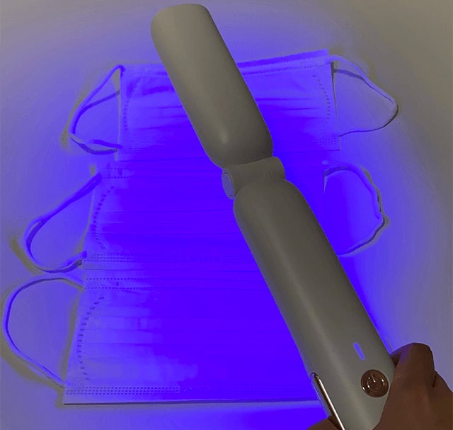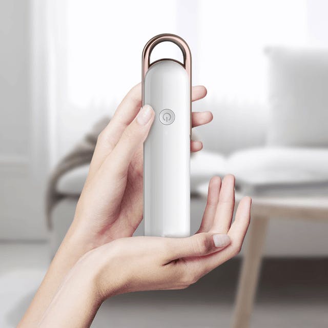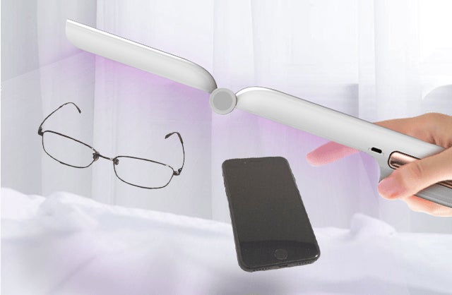 ポータブル除菌器はボタンを押して除菌したいものに照射するだけ。