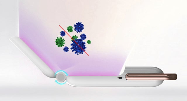 ポータブル除菌器はUVライトが目に入るのを防ぐため、傾ける(裏返しにすると)とUVライトが自動的にOFFになる自動センサーが内蔵されています。