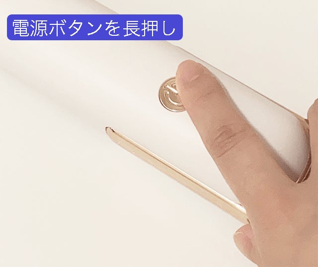 ②本体を開き、電源ボタンを上にし電源ボタンを5秒長押しします