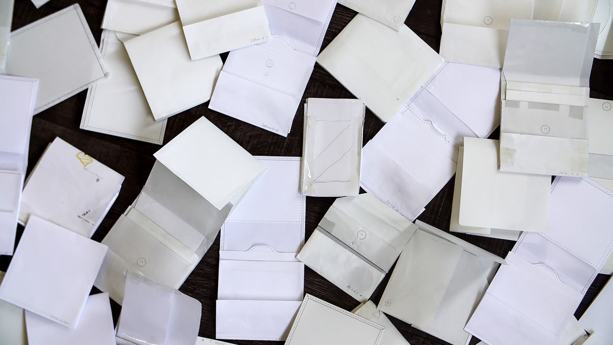 紙で試作を重ね、どう使い勝手を良くするかをミリ単位で調整していきました。 財布にとって1㎜はとても大きな差です。100個以上の紙模型を作り検討を重ね、その後革で何度も調整を重ねました。特にコイン入れは使いやすさを重視し、最後まで調整しています。」