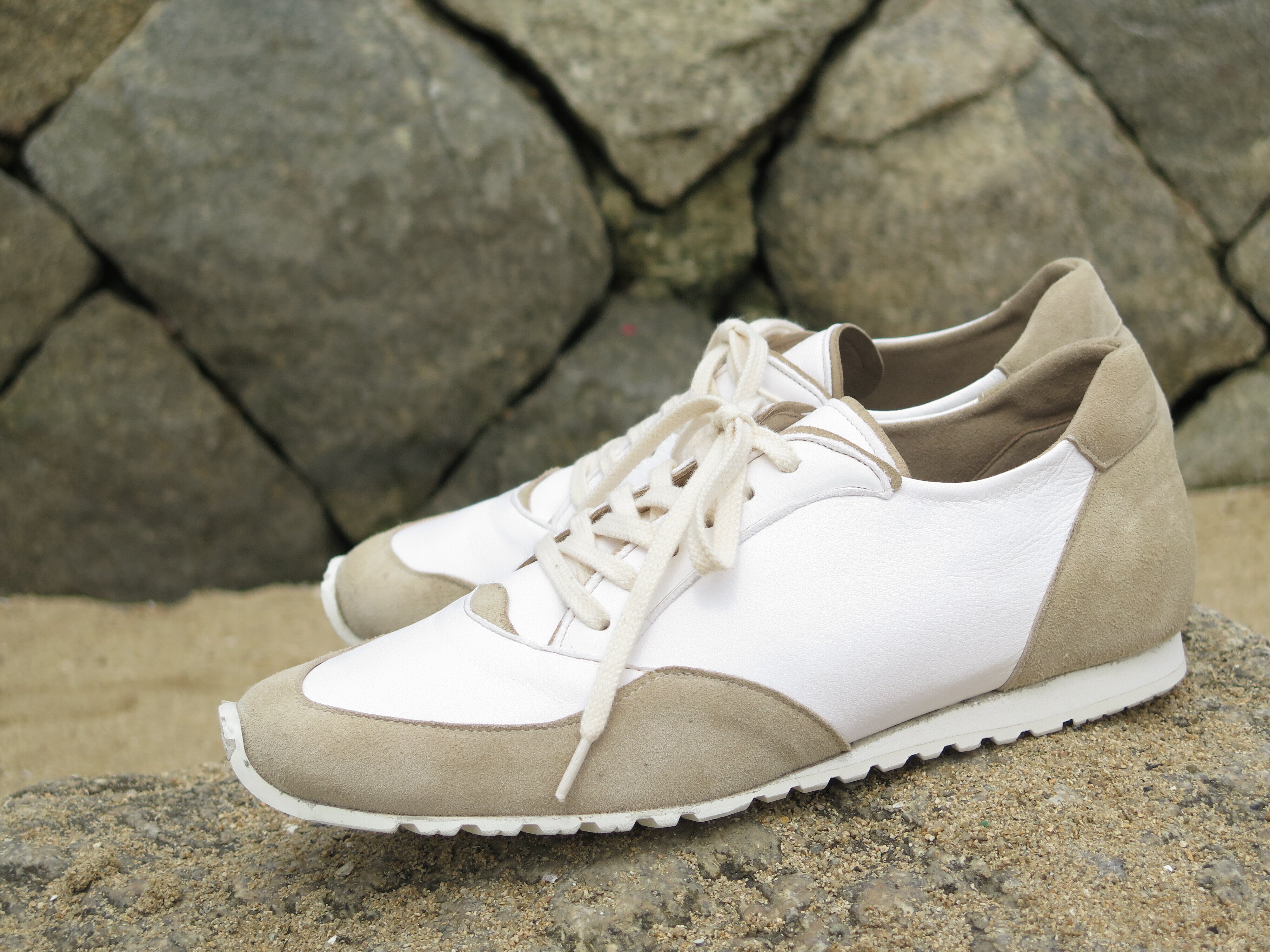 ご覧いただきありがとうございます。日本のスニーカーをデザイン、製造、販売まで一貫したプロセスのもと作りたいという思いで始めたレザースニーカープロジェクトとなります。