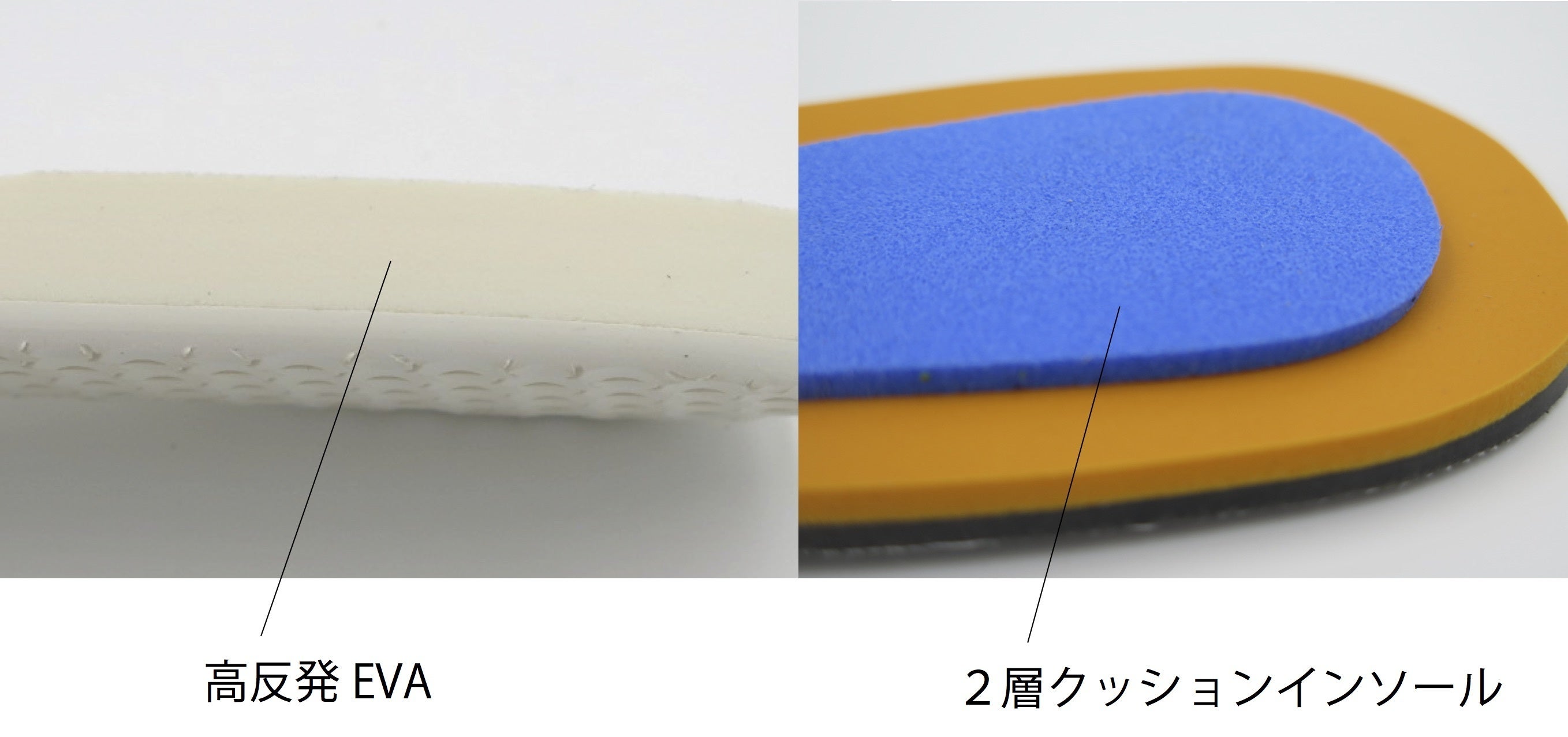 高反発EVAのミッドソールに低反発インソールを導入し快適なクッション性を実現。