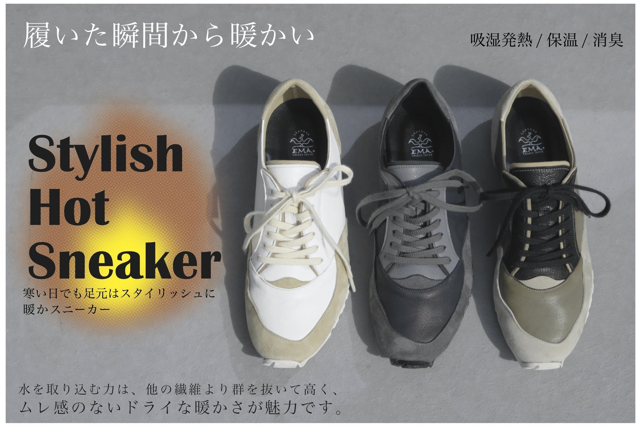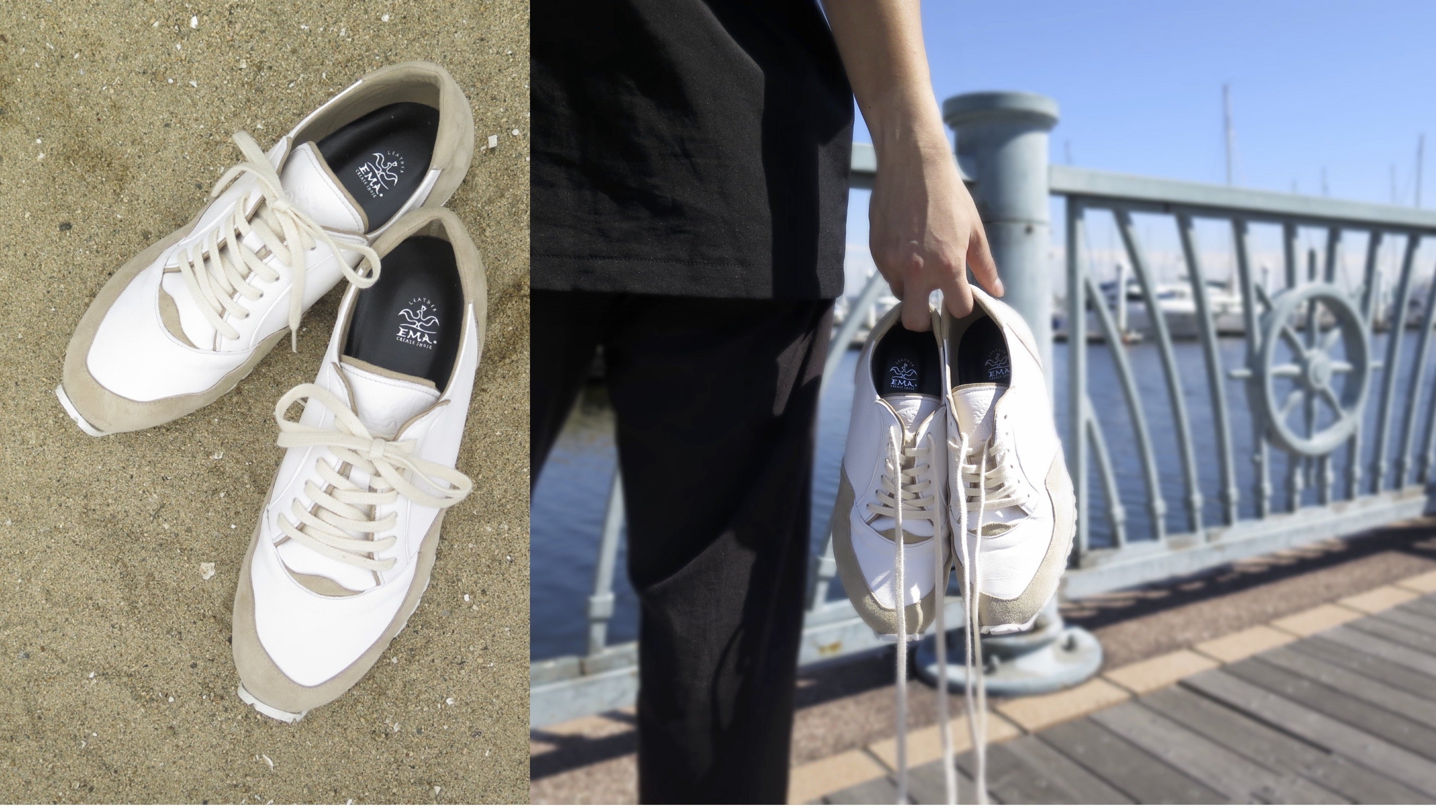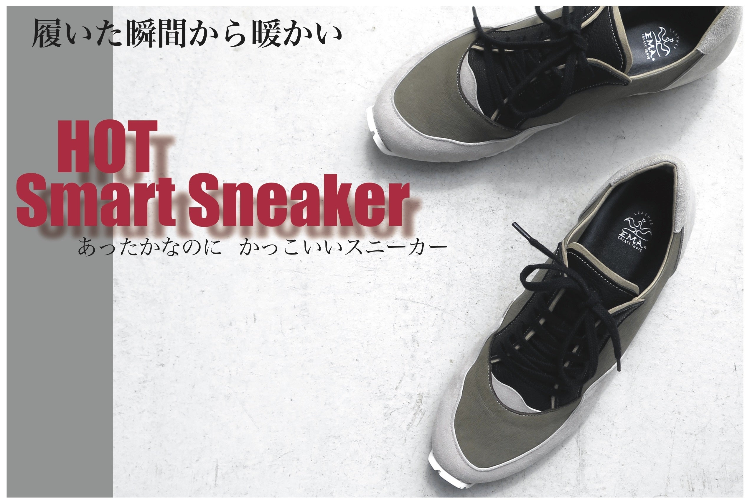 私たちEMA株式会社は2014年創業し手作りのレザー品からスタートしました。実行者自身が20年靴に携わり、世界各地の工場やシューズメーカーと色々なシューズを作り上げてきた経験から、日本の新しいスニーカーを作る為このプロジェクトの実行に至りました。