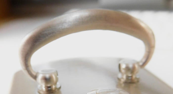 取手部分、取手台部分にも流線的な丸みを施し、暖かみを感じさせるデザインになっています。裏蓋はステンレス製で、エンボス加工によりロゴを表現しました。