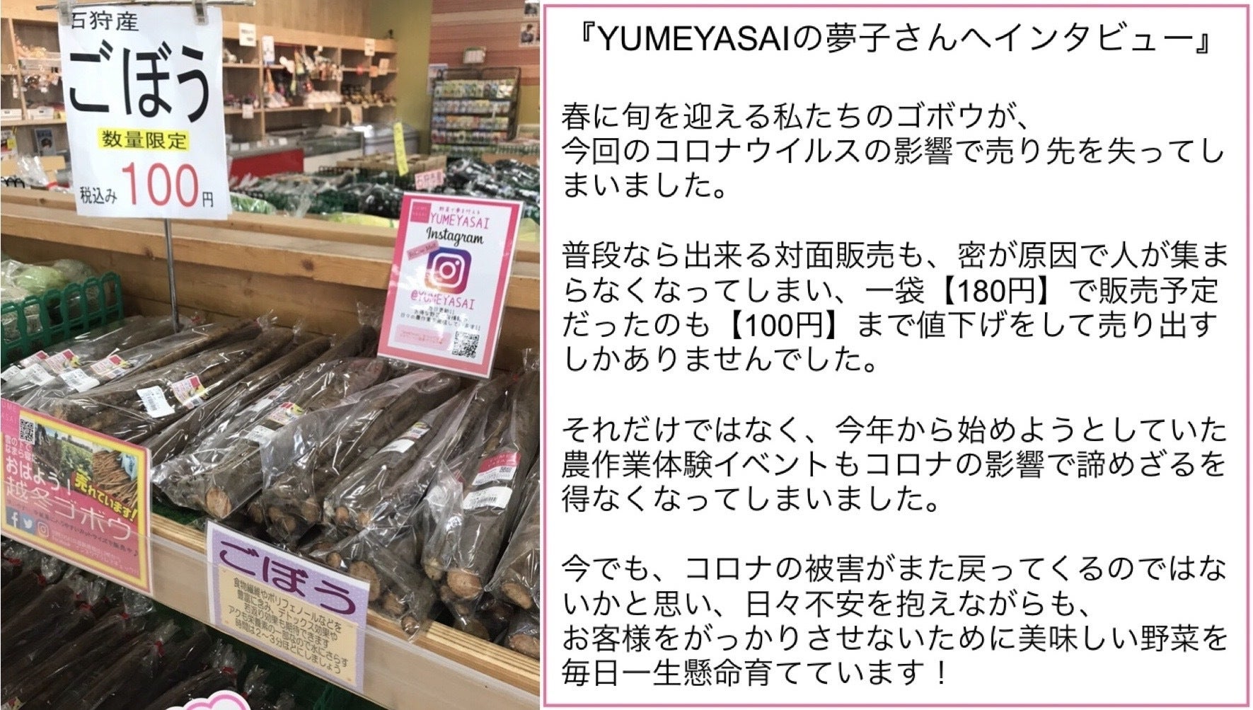 私たちが出会った農家さんの1人、北海道石狩のYUMEYASAIさんも新型コロナウイルスの被害を受けています。