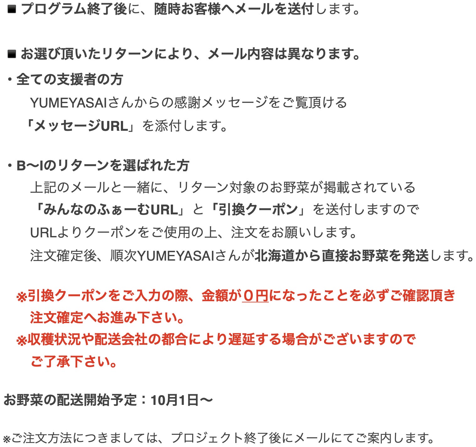 目標金額に満たない場合も計画を実行し、リターンをお届けします。