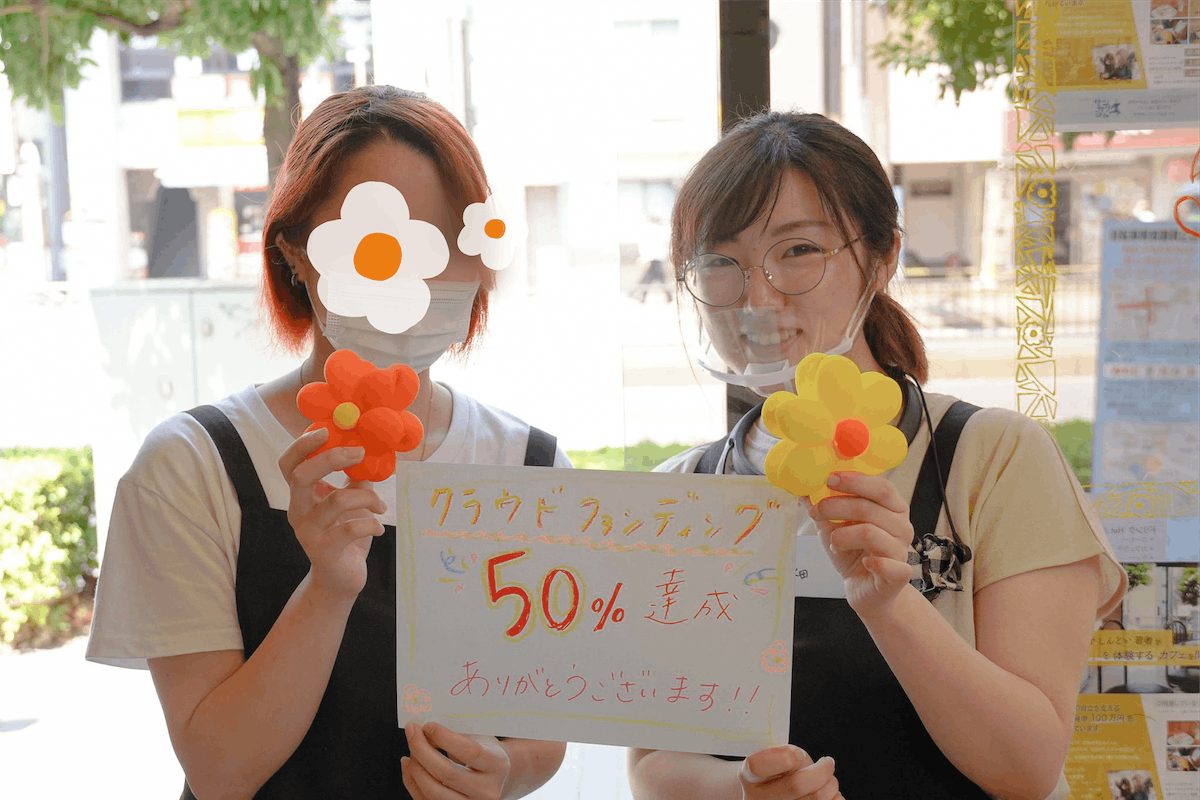 100万円をゴールに、実施中のクラウドファンディング【社会が "しんどい" 若者が「働く」を体験するカフェを開きたい!】が、50%を達成しました!