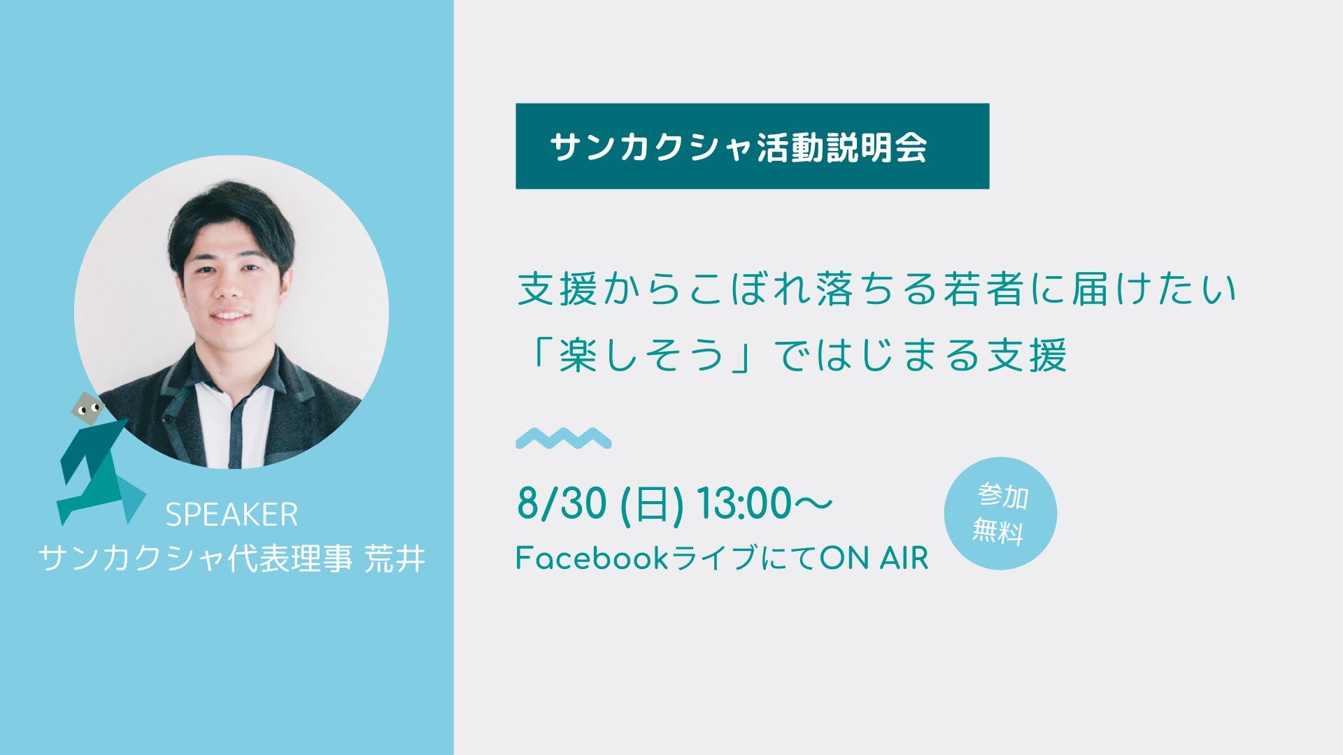 若者の居場所の運営や、企業と連携した社会サンカクの機会づくり、最近は住居のサポートなども始めたサンカクシャの活動がまるっとわかるこの機会。