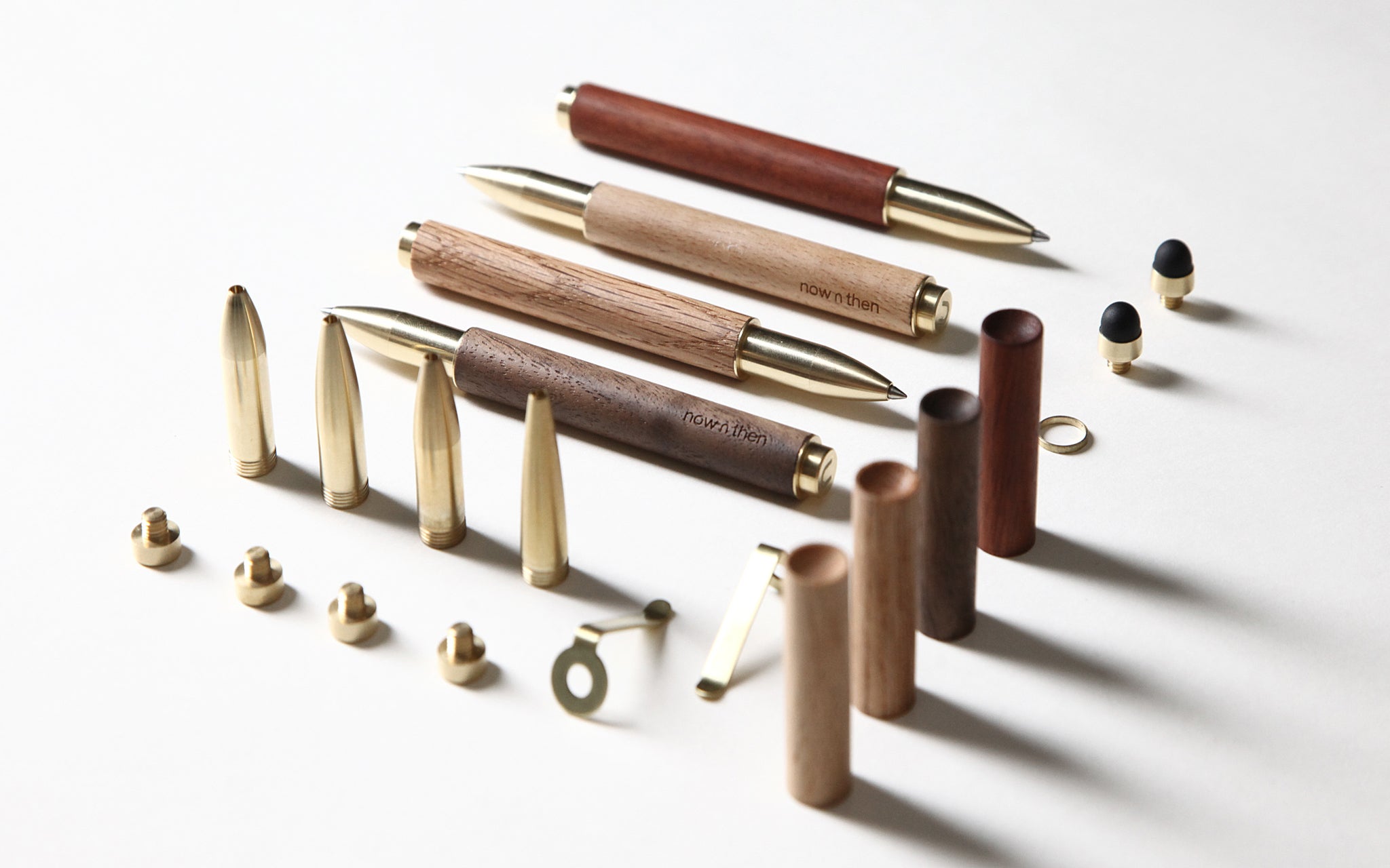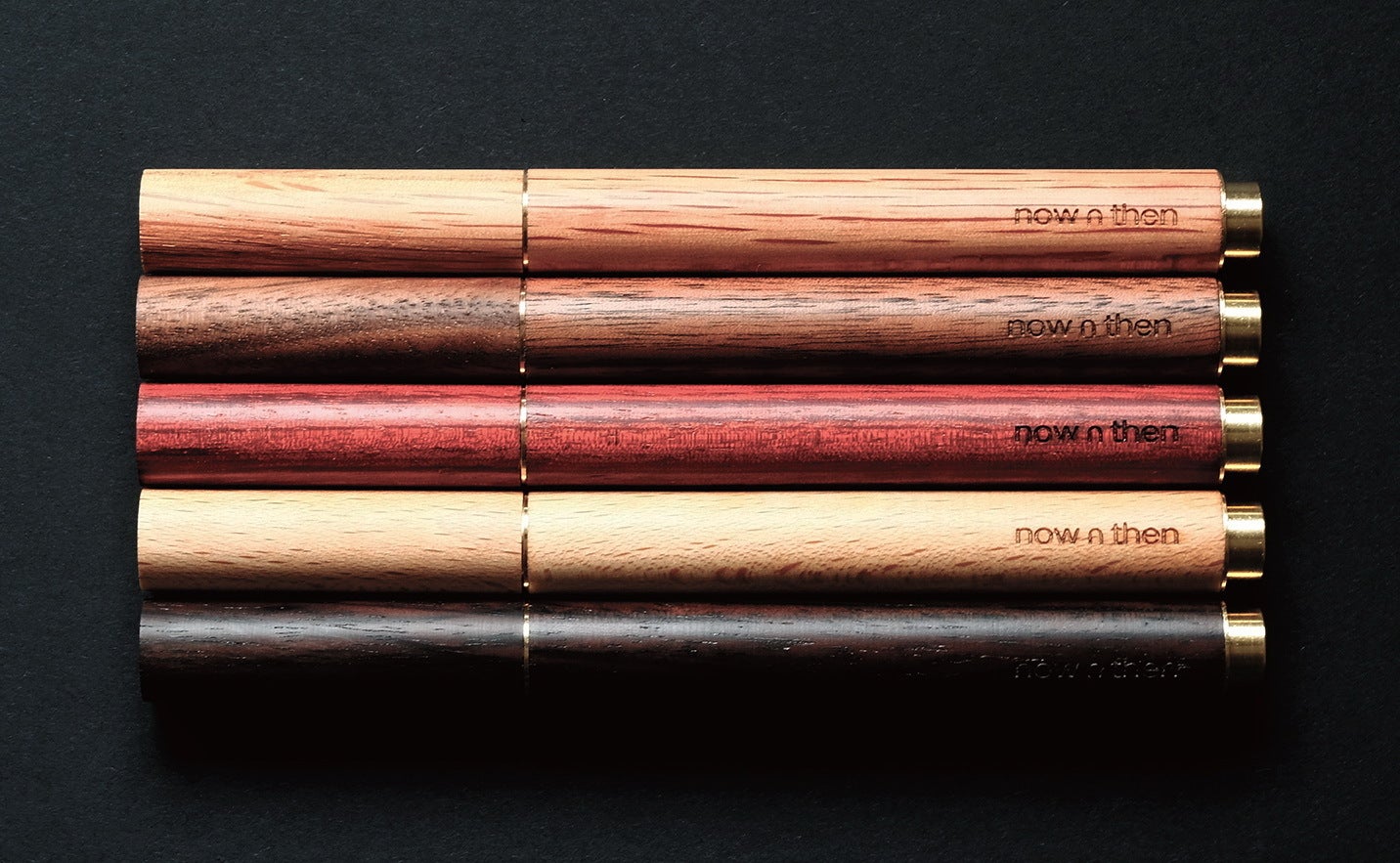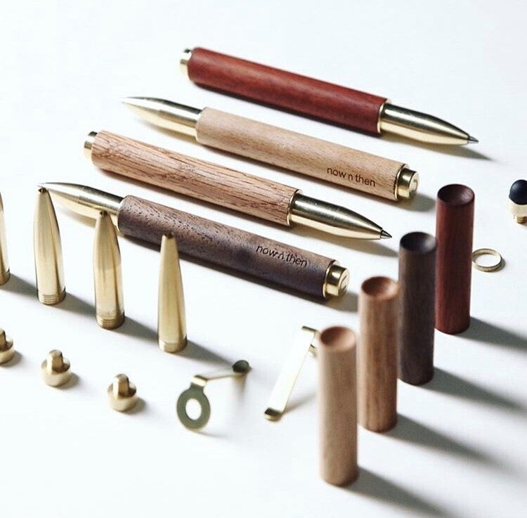 【Retro Essential Pen】は天然の木材と金真鍮を組み合わせた、どこかレトロな雰囲気を感じられるデザインで、ウォルナット、ブナ、オーク、ローズウッド、カリンの5つの異なる木材から制作されています。
