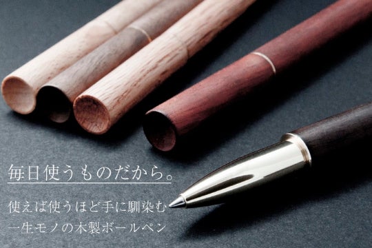 天然の木材を使って制作され、木の年輪が刻まれるように、貴方と共に年を重ね変化する、”一生モノ”のボールペンをお届けします。