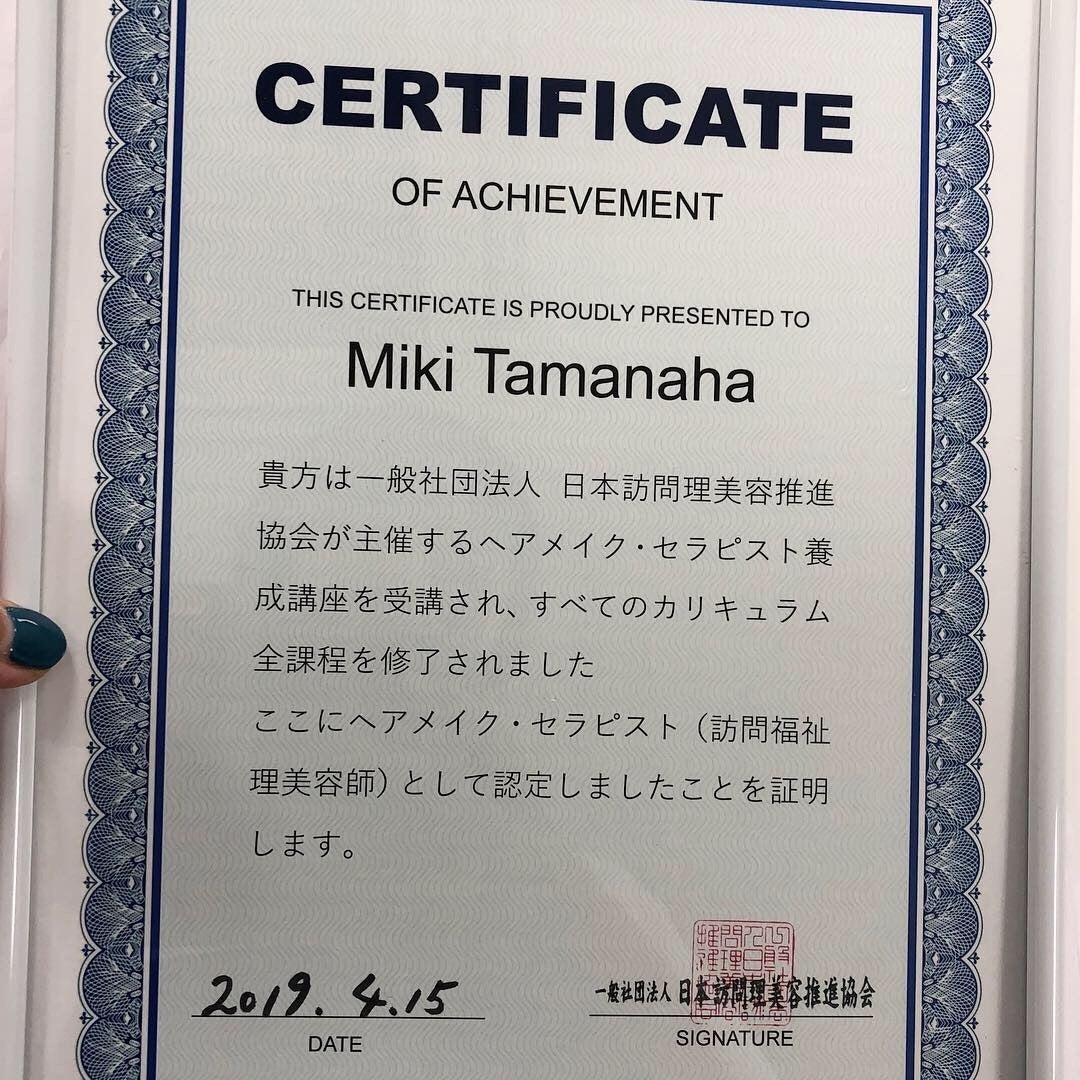 そして、昨年今後のことも考えて、訪問美容の養成講座を受け、無事ディプロマを取得!!