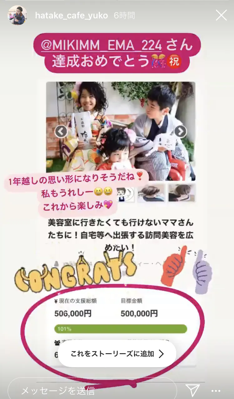 ご支援いただいた皆様の為にも、しっかりしなきゃ!とこれからの準備に取り掛かる予定です。