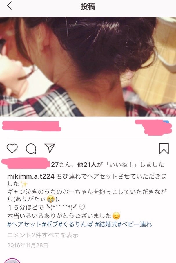 (出張ヘアセット第一号のママさん↑)