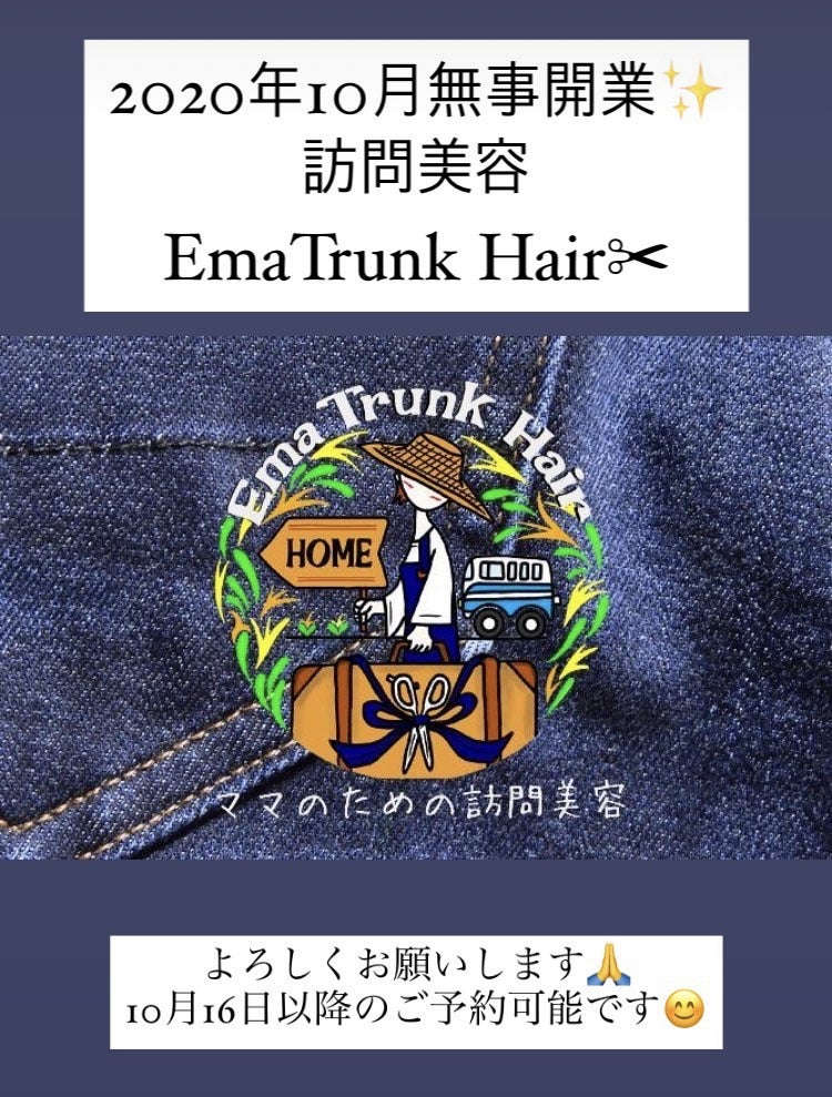 この度、「ママの為の訪問型美容室 Ema Trunk Hair(エマ トランク ヘア)」を開業することになりました。ママ美容師の 玉那覇美紀です。