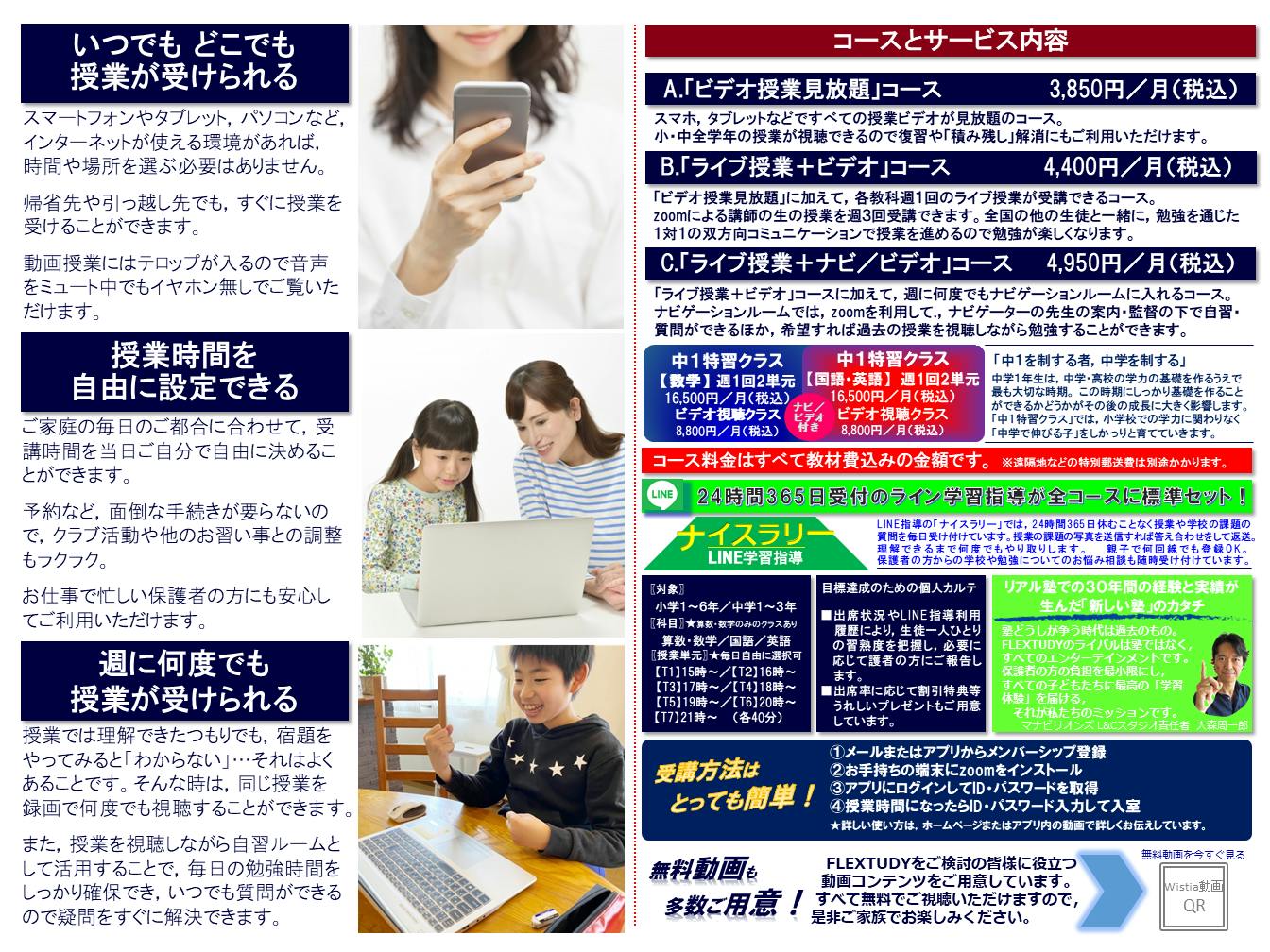 ご家庭の毎日のご都合に合わせて,受講時間を当日ご自分で自由に決めることができます。