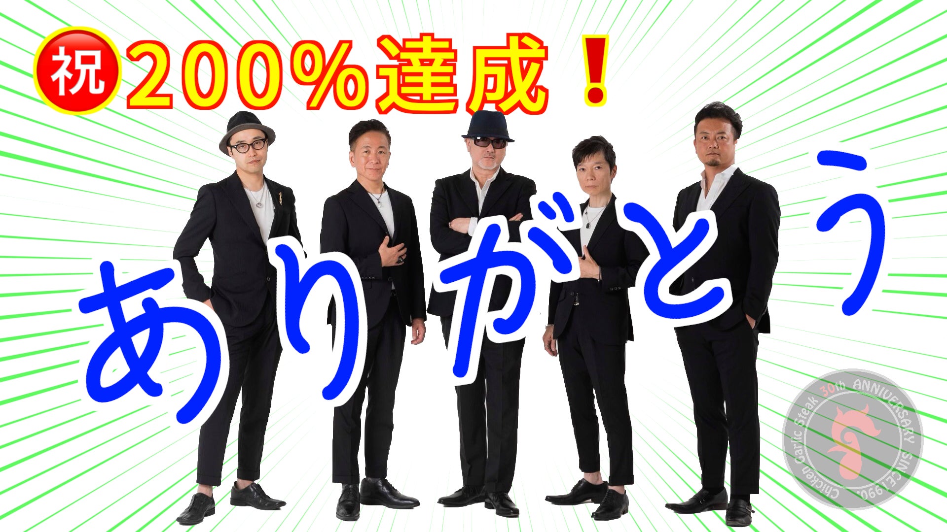 2023/09/04 10:00コロナ禍で歌うことができなくなりクラウドファンディングによるチキンガーリックステーキ継続支援・活動応援プロジェクトを立ち上げまる3年経ちました今年の5月にようやく活動制限がなくなり履行できないままだったリターンも少しずつ実施出来先日、全てのリターンを履行することができました本当に長い間お待たせしてしまいました今こうしてチキンガーステーキが活動を続けられているのも皆様の温かい応援のおかげです本当に本当にありがとうございましたこれから本格的に活動再開していけると思っています皆様からの愛を力にして歌っていきます是非パワーアップしたチキガリを観にステージにお越しくださいもちろんアルバム制作もドンドンしていきたいと思っていますよ!この度はチキンガーリックステーキへの温かなご支援誠にありがとうございました※全リターン履行済みではございますが まだ申し込みをされていない方がおられます 該当する方は早めにご連絡いただければと思います※お問い合わせは Campfireのメッセージ機能か cgs.crowdfunding@gmail.comまで下記項目を明記の上お願いします・お名前・連絡先(電話かメール)・申し込みコース・支援ID(これがないと申込者の本人確認ができません)・問い合わせ内容ただいま再開或いは新たに行っているライブは・レギュラーライブ(無観客生配信に変更・月に一度、神戸ラズリカフェにて有観客)・チャリティーコンサート in チャペル(30周年で予定していた生声コンサート・10/6東京より再開)・三響物語(邦楽・洋楽・オリジナルを3日間行うコンサート、10/7東京・1/27,28名古屋)・クリスマスコンサート(12/10福岡・12/17神戸・12/23横浜・12/24名古屋)随時決まり次第公式サイト・公式ブログ・公式SNS等でお知らせします もっと見るコロナ禍収束!?