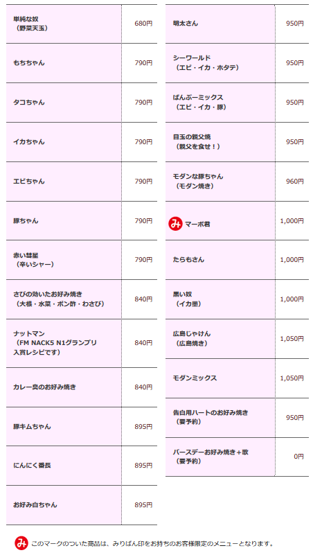 ※ ここに掲載してますメニュー以外にも、季節の限定メニュー、新メニューなどもあります!