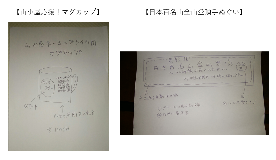 「山小屋応援!マグカップ」には、山小屋の方に賛同を頂き山小屋の名前を記載させていただきます。当店で通常メニューに加えて提供させていただきます。