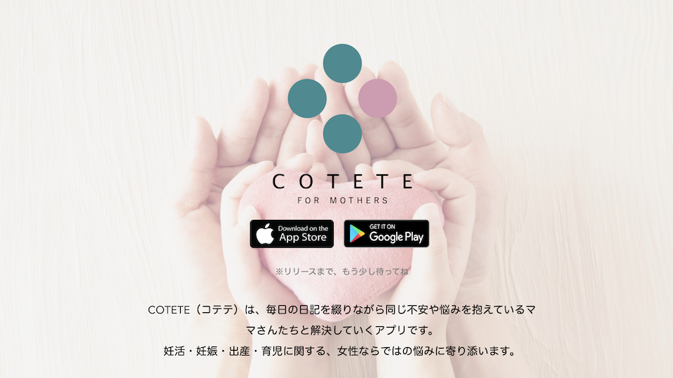 このCOTETEではそんな家族のはじまりから成長までの思い出をなるべく多く残していくこと、そして家族が辛い時にほんの少しでも役に立つ存在であることを目指して立ち上げました。妊活から出産、育児ととても大変な時期を迎えるママたち、そしてそれを支える家族のために便利なものとして使ってもらえたらと思っています。